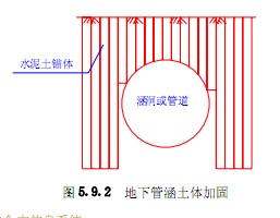 在软弱地层施工管涵时,可采用竖向加筋水泥土桩体加固。
