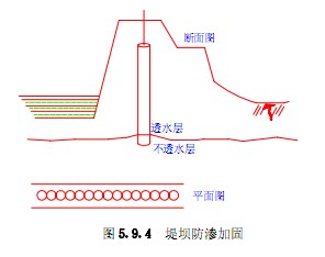 为防止海堤、河堤渗漏,可采用加筋水泥土桩体加固处理,宜形成相互咬合(搭接150~200mm)的加筋水泥土连续桩墙。