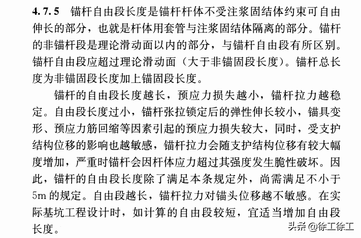 对于锚杆来说,主要矛盾就是承载力够不够,而承载力则来自于注浆体,也就是锚固段。因此,对于一部技术标准来说,将过多的笔墨放在自由段、非锚固段这类字眼和相关的要求上,是没有太大的意义的。