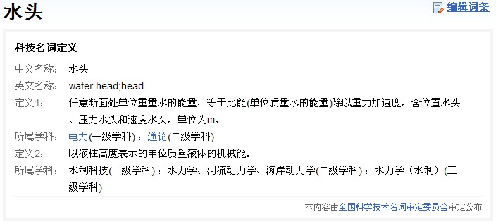 我们先看看什么是水头,百度百科中对于“水头”是这么解释 的: