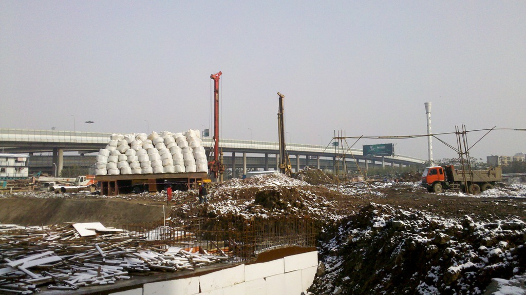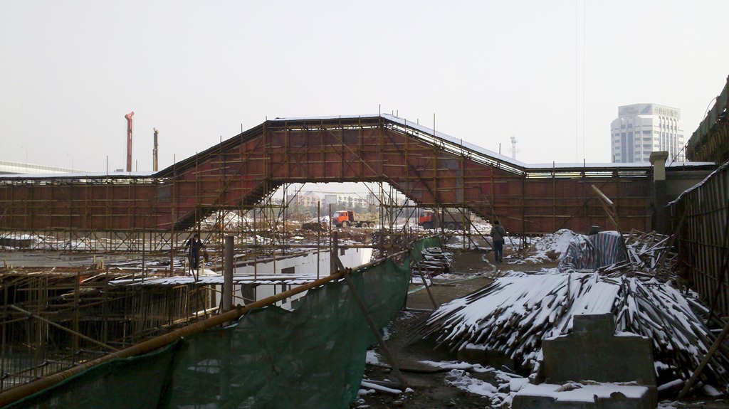 从业主项目部办公室出来后,在工地上转了一圈,基本处于停工、半停工状态,工地上没什么人,随处可以见到还没融化的积雪,风一吹便是刺骨的寒冷。
